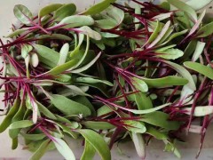 甜菜苗属于叶用甜菜,茎杆红色,叶片绿色,成熟期约为30天。适合容器内做芽菜栽培。与口感甜嫩,而栽培则同样容易。采收时将它们叶片从根部以上5厘米处剪下。 性喜冷凉湿润的气候。但耐寒及耐热力均较强。种子在4-5℃下能缓慢发芽,发芽适宜温度18-25℃。低温、长日照有促进花芽分化的作用。生长期需要充足的水分,但忌涝。适宜中性或弱碱性、质地疏松的土壤。耐肥,耐碱。可做芽苗菜栽培,并食用。