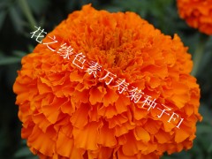 我公司研发生产的杂交一代色素万寿菊F1,是提取天然色素的专用品种,该品种株型整齐、耐倒伏、健壮、分枝能力强、株高1.6米左右、花色、猩红色、色素含量在24‰左右花瓣密实,完全重瓣,不露心。亩产鲜花4000公斤左右该品种整个生长季节,其抗病性、对环境适应性特别突出,花期开花至霜冻。其鲜花产量、色素含量均超过常规品种。也是目前国内单产、色素含量的品种。