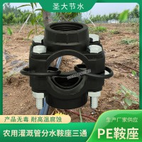 圣大节水灌溉三通鞍座,采用you质PE料生产,产品规格从25*1/2-250*3mm,耐温范围-20~40℃,安装方便,解释耐用。