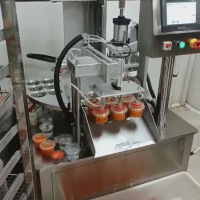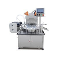 机器特点:304机体,电箱上置,机体台面可冲水,可快速更换模具,一台机做多款产品,定位精准切边小,采用PLC及人机界面操作系统,各项参数设定直观精确,操作便捷。自动定量灌装,运行稳定可靠,灌装封口性能优越,效率高,适用性广。