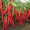 高产单生朝天椒映山红本品种是中早熟一代杂交种,从韩国引进,单生果实朝上,植株茂盛,分枝多,座果力强,适应性广。果长9厘米