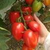 曼谷红罗曼型大红番茄,无限生长型,早熟,果实长椭圆型,萼片平展,每穗坐果数8-10个,单果重80克左右,坐果均匀一致,可成串采